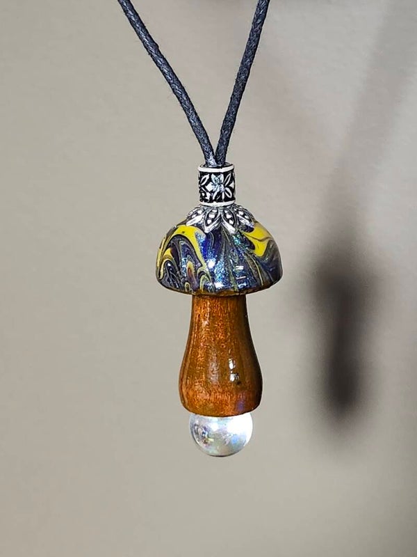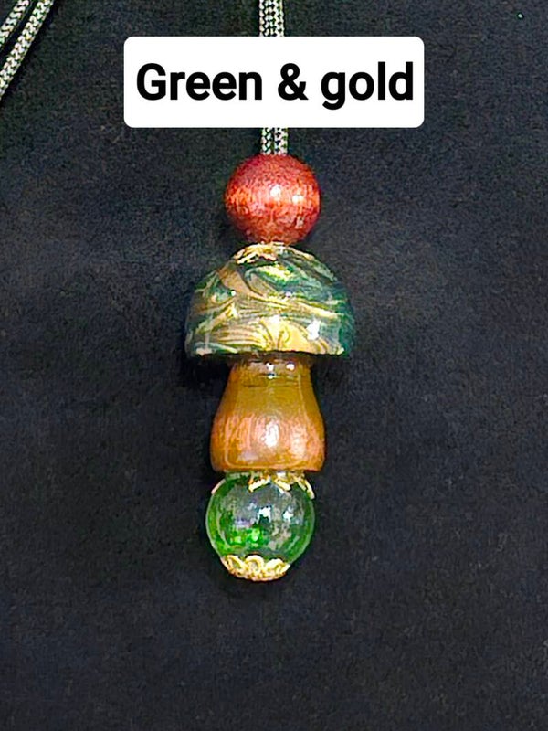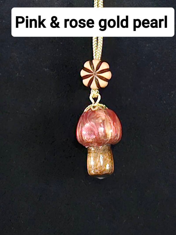 Discover our charming Mushroom Pendants, perfect as a necklace or to adorn your car's rearview mirror. For centuries, mushrooms have symbolized good luck, fortune, and health. These delightful pendants measure about 1 inch in height and 1/2 inch in width. Choose from eleven vibrant colors. Personalize your pendant with an additional charm for just $3.00 more, selecting from gold or silver mystery charms featuring wildlife or ocean themes, a capital letter, silver feather, or a gold or silver peace sign or star.