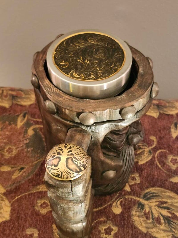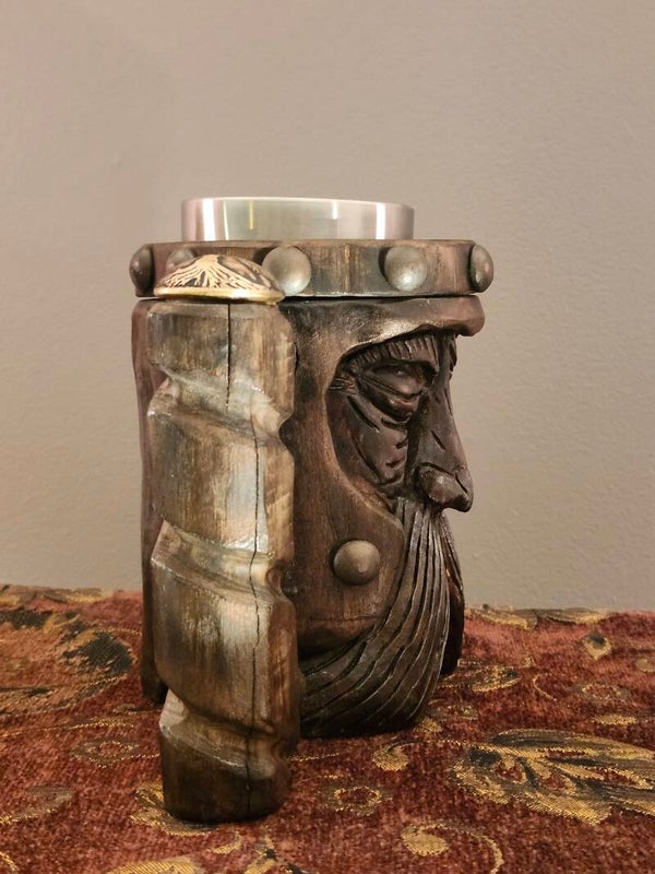Steins, Tankards, Ecker-Steins: Discover the handmade dwarf character Stein, crafted from kiln-dried hardwoods, intricately hand-carved with medieval inspiration, truly one-of-a-kind and exceptionally unique. This Stein features a removable and washable glass liner.
