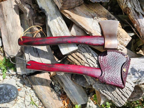 Twin Oaks Brand offers handcrafted custom hatchets, knives, and leatherworks. The 1.5 lb throwing hatchet features a high-carbon steel head, an American Hickory handle, and a real leather sheath. It's an excellent camping axe as well, designed for durability and utility. Check out the product variants for different handle and sheath colors.